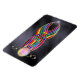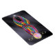 Un abstracto cautivante de color florido enmarcado en oro y lleno de diamantes y perlas. Sinuosos flujos brillantes de curva roja, amarilla, verde, azul, púrpura y rosa suavemente, cruzando de una grandiosa perla hasta la punta, acentuada al final por una ráfaga estelar. Este diseño arcoiris se coloca sobre un fondo de seda negra.