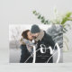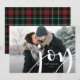 Una simple y elegante tarjeta fotográfica de vacaciones permite que tu foto favorita ocupe el centro del escenario. El diseño de la moda presenta una foto horizontal o orientada al paisaje de sangrado completo, con "alegría" colgada en letras blancas. Personaliza con tu nombre o apellido, y el año. La carta se revierte a un patrón inverso de arenilla de tartán rojo y verde.