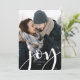 Una simple y elegante tarjeta fotográfica de vacaciones permite que tu foto favorita ocupe el centro del escenario. El diseño de moda presenta una foto vertical de sangrado completo o orientada a retratos, con "alegría" colocada en letras blancas. Personaliza con tu nombre o apellido, y el año. La carta se revierte a un patrón inverso de arenilla de tartán rojo y verde.