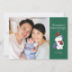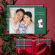 Deséenle lo mejor a cualquiera esta temporada navideña con esta tierna, personalizable, tarjeta de planilla de fotos que muestra al frente a un adorable perro pastor dibujado a mano con el texto "Saludos de temporada". Use la plantilla fácil para agregar su propia foto familiar, el año, y para firmar su nombre. La parte trasera está decorada con un fondo de guijarros color verde y blanco a mano. Esta tarjeta seguramente traerá una sonrisa a la cara de cualquiera, especialmente a los amantes de los animales y perros. Con el año que se agrega, es un gran placer.
