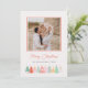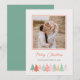 Este alegre y festivo diseño navideño presenta su mejor foto personal favorita en formato cuadrado y la palabra "Feliz Navidad" (u otro texto de su elección) en texto manuscrito sobre un fondo de color marfil limpio con un borde inferior ilustrado de árboles de Navidad garabateados. Tarjeta invertida a un verde de menta que coincida Con facilidad, agregue su mejor foto, sus nombres de familia y el año usando la plantilla. ¿Necesita ayuda o solicitud del personalizado? Por favor, escriba un correo electrónico en citronelladesign@gmail.com