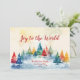 "Joy to the World" es el guión rojo de esta alegre tarjeta de Navidades acuáticos que presenta una variedad de pinos vacacionales de inspiración vintage en un paisaje montañoso nevado de bosques. Todo el texto es editable. Asegúrese de cambiar los nombres de familia y el año de ejemplo a los de su elección.