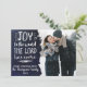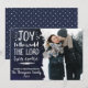 Usa nuestras tarjetas de Navidades fotográficos con la frase "Alegría al mundo, el Señor ha llegado" y un fondo de estrella de la marina para desear a tus amigos y familia una Feliz Navidad. BONUS: El motor con patrones puede cambiarse a un patrón y color diferentes. Vaya a la sección "Personalizar esta plantilla" y, a continuación, haga clic en "Hacer clic en el Personalizar más adelante" en la parte inferior. Puede cambiar el color del fondo del patrón para que se coordine con la foto y elegir entre ocho opciones de patrones diferentes. Para cambiar el patrón, pulse sobre la forma del ojo junto al nombre del patrón para activarlo o desactivarlo.