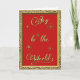 Diseño de una tarjeta creativa con un fondo rojo Navidad con un borde dorado texturado enmarcando las palabras de los Navidades "Alegría al mundo" rodeado de formas de pincel estrella de Photoshop. Este diseño colorido y atractivo se completa con un personalizable Navidad Saludo y Escritura Verso abajo para adaptarse a su propio diseño especial de Navidades.