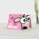 Diseño gráfico y moderno de tarjetas de felicitación I Love You con una vaca deslumbrante y las palabras '¡Amo a Moo!'. El interior de la tarjeta dice "Feliz Día de San Valentín". Diseño © 2009 Lisa Marie Robinson