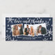 Difunde amor esta temporada de vacaciones con esta tarjeta de foto de vacaciones completamente personalizada con una tarjeta de agradecimiento de recién casados. Cuenta con 3 fotos y copos de nieve dibujados a mano y fondo con efecto texturizado navy.