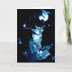 Decoración de árboles de Navidad en azul sobre negro; cuerno que sopla ángel, que sale de una gran flor, luces y cuentas. Una atractiva carta única. Texto interno : Deseándote alegría por los Navidades y en el Año Nuevo. Personalizable, puede cambiar el texto para que se adapte a sí mismo.