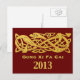 Esta postal, celebrando el Año Nuevo chino de la serpiente en 2013, ofrece un ilustracion complejo de una serpiente larga en oro con las marcas rojas de la flecha en los intervalos a lo largo de su longitud en el frente, contra un fondo del rojo.