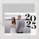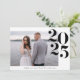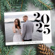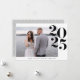 Envíe saludos de vacaciones a amigos y familia con nuestras audaces tarjetas de fotos de Año Nuevo. Las modernas tarjetas navideñas muestran tu foto favorita dentro de un marco blanco con 2019 en un estilo tipográfico audaz sobre negro. Personalice las tarjetas de vacaciones de moda agregando nombres y saludos de su personalizado. El reverso de la tarjeta presenta un diseño moderno personalizable en gris y blanco.