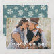 Celebra el año nuevo con una elegante tarjeta de fotos de Año Nuevo Feliz. La tarjeta fotográfica de vacaciones incluye un overlay con las palabras "Happiest New Year" en un alfabeto blanco y un marcador de posición para texto y foto personalizado. En la parte trasera hay un patrón de copos de nieve.