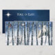 Tarjeta de Navidades de Paz en la Tierra. Fox Ártica en el bosque invernal con Estrella de Belén brillando a través del bosque invernal. Tarjeta plana con cielo azul oscuro y estrella de Belén en la espalda. Mensaje de vacaciones personalizado para hacer el tuyo propio.