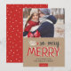 Personalizado económico imprimió tarjetas fotográficas de vacaciones con plantillas sencillas para la personalización. Este diseño moderno presenta una mezcla festiva de tipografía en rojo y blanco sobre un fondo falso de papel kraft. El texto dice "Muy Feliz". Personalízalo con tus fotos y agrega tu apellido y el año. El lado inverso tiene espacio para fotos y texto adicionales. Utilice las herramientas de diseño para editar el texto, añadir más fotos y crear una única tarjeta de fotos navideña.
