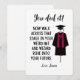 ¡Celebra la graduación con un toque divertido y mágico! Esta caprichosa tarjeta contiene un mensaje audaz que dice: "¡Lo hiciste! Ahora camina por ese escenario en tu extraño gorra y mago toga en tu futuro". Una combinación perfecta de humor y ánimo, esta tarjeta compara juguetamente el atuendo tradicional de graduación con la bata y el gorra del mago, convirtiéndolo en un regalo memorable y único para cualquier graduado. Ya sea que terminen la secundaria o la universidad, esta carta les traerá una sonrisa en la cara. Además, ¡puedes personalizar el color de la robada para que coincida con sus colores escolares o estilo personal! Ideal para graduados de la clase 2025, esta carta desenfadada es una forma divertida de felicitar con personalidad.