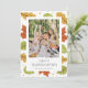 Foto personalizado tarjeta de Acción de Gracias con hojas caídas de otoño. Personaliza fácilmente esta hermosa tarjeta de vacaciones con tu foto, el nombre de la familia y el texto.