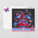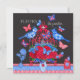 Pájaros de porcelana de flores y carta de jaulas con flores azules y rojas y mariposas en la pizarra. Forma un par con Fleur Porcelana Teacup y Flores. Para todos los amantes de los colores franceses y de la porcelana azul y blanca. Adecuado para cumpleaños, obtén, simpatía, deseos de día de la madre y más.