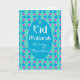 Una tarjeta de saludo de moda para personalizar para Eid, con un patrón islámico tradicional en azul, verde y púrpura, delineado en blanco; de la colección "islámica" Posh & Painterly.