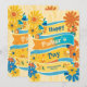 Esta tarjeta del Día del Padre presenta un diseño delicioso, de inspiración retro, con banderas en capas en verde azulado y naranja que muestran el mensaje "Feliz Día del Padre". El fondo y los carteles están adornados con alegres flores amarillas y naranjas con un acento azul. El cartel de abajo incluye el mensaje más sincero: "Siempre agradecido por ti". Esta tarjeta proporciona una manera única y memorable de celebrar el Día del Padre, disponible para descargar e imprimir fácilmente.
