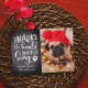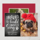 La Adorable tarjeta de fotos de vacaciones para perros incluye una imagen favorita de tu amigo de cuatro patas alineado a la derecha, con "¡Bark! Los ángeles del heraldo cantan" en tipografía con letras a mano blanca sobre un fondo rústico de pizarra. Personalice el saludo de su personalizado y los nombres que aparecen debajo (que se muestran con "alegres días de fiesta"), y añada una foto adicional a la parte posterior.