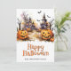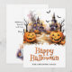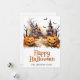 Carta feliz de Halloween con ilustraciones acuarelas de murciélagos, jack o’lanterns y fantasmas. Personaliza fácilmente esta linda tarjeta de Halloween con tu nombre familiar y texto.