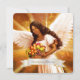 Bendiciones de Acción de Gracias. Ángel afroamericano sosteniendo una cesta de cosecha pintando tarjetas de felicitación planas personalizadas de Acción de Gracias. Pintura original de Carlos Maraz, España, 2010. Derechos reservados © Carlos Maraz. Tarjetas de correspondencia y regalos disponibles en los días festivos | Categoría de Acción de Gracias de nuestra tienda.