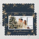 Festiva Blue Modern Snowflake Foto Tarjeta navideña Feliz