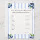 🧠 QUE LOS CEREBROS DE LOS HUÉSPEDES SE JUGUEN CON ESTE DESAFÍO DULCE. Añada diversión a la celebración de su pequeña con esta riña de palabras con temática Blueberry de la Colección Berry Sweet Birthday. Los huéspedes se apresurarán a desentrañar 12 palabras sobre el tema del bebé y el cumpleaños, perfectas para despertar risas y una competencia amistosa. ✨ JUEGO RESALTA 12 Palabras temáticas: términos de bebé/cumpleaños astutamente revueltos