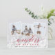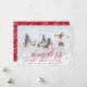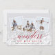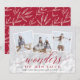 Elegante tarjeta fotográfica de vacaciones cuenta con tres fotos cuadradas en un diseño de collage, con un gran reborde de luces para un aspecto festivo y burbujeante. "Maravillas de su amor" está colocado en un vibrante guión rojo arándano y letras en bloque, con tu nombre(s) y el año por debajo. Las tarjetas cambian a un fondo festivo con motivos botánicos rojos.
