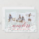 Elegante tarjeta fotográfica de vacaciones cuenta con tres fotos cuadradas en un diseño de collage, con un gran reborde de luces para un aspecto festivo y burbujeante. "Maravillas de su amor" está colocado en un vibrante guión rojo arándano y letras en bloque, con tu nombre(s) y el año por debajo. Las tarjetas cambian a un fondo festivo con motivos botánicos rojos.
