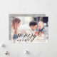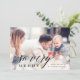 Elegante tarjeta de vacaciones con una foto orientada al paisaje con un efecto de destello de luz bokeh para un aspecto festivo y burbujeante. "Muy alegre" se superpone en escritura negra y letras mayúsculas, con tu nombre(s) y saludo personalizado junto a ella. Agrega dos fotos adicionales en la parte trasera, junto con un mensaje personalizado, en un fondo neutro con patrón botánico.