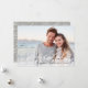 Elegante tarjeta fotográfica de vacaciones cuenta con una foto panorámica de sangre completa con un gran reborde de bóveda de luz para un aspecto festivo y burbujeante. "Feliz Año Nuevo" o tu elección de saludo de vacaciones se coloca en letras negras, con tu nombre(s) y el año al lado. Añade dos fotos adicionales a la parte posterior, junto con un mensaje personalizado, en un fondo con patrones botánicos neutrales.