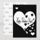 ¿Estás buscando una carta romántica y hermosa para desear un Feliz Día de San Valentín a alguien especial? Bueno, tienes suerte porque aquí está el para ti. Esta elegante y moderna tarjeta de vacaciones expresaría tu sentimiento de manera única, con un gran corazón blanco con la frase ¡¡¡Feliz Día de San Valentín!!! en letras negras y elegantes y varios corazones blancos y negros flotando, con un fondo negro. La parte posterior de esta tarjeta plana tiene un fondo blanco con un patrón formado con la palabra xoxo, totalmente personalizable. Esta es la tarjeta perfecta para esta festividad para regalar a tus amigos, novio o novia. Estoy aquí para ti si necesitas ayuda con la personalización o tienes alguna pregunta, así que por favor siéntete libre de enviarme un mensaje en ese funda.