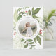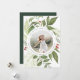 Elegante tarjeta fotográfica navideña incluye una foto favorita rodeada de frondosos follajes botánicos verdes y pequeñas bayas rojas. Personaliza con un saludo de feriado personalizado (mostrado con "deja que el cielo y la naturaleza canten"), y tus nombres se curvaron alrededor de la foto. Añade dos imágenes adicionales a la parte posterior, junto con el año.