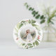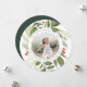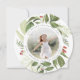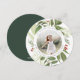 Elegante tarjeta fotográfica de vacaciones en una forma redonda única presenta una foto favorita rodeada de frondosos follajes botánicos verdes y pequeñas bayas rojas. Personaliza con un saludo de feriado personalizado (mostrado con "deja que el cielo y la naturaleza canten"), y tus nombres se curvaron alrededor de la foto.
