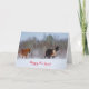 Caballos que corren alrededor en la tarjeta del Año Nuevo de la nieve. El texto interior dice que "la Feliz Año Nuevo y para el motivo del cielo se divierte cierto!"