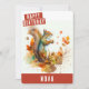 Una linda tarjeta de cumpleaños de acuarela con una ardilla celebrando el otoño con "Feliz Cumpleaños" en una letra en negrita de color blanco y con mayúsculas. Personalice la parte delantera agregando su(s) nombre(s). La parte posterior de la tarjeta contiene espacio para el mensaje escrito a mano o con tipeo.