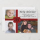 ¡Una forma bonita y creativa de mostrar tus tres fotos familiares para Navidades este año! Esta tierna caja de regalo falsa de estilo 2 caras Navidades planos tarjeta de saludo tiene un fondo blanco damasco "papel envolvente" con un gran arco rojo de vacaciones e imagen de cinta. Añade tus imágenes digitales para hacerlo todo tuyo. Derechos reservados ©CustomChristmasPhotoCards.