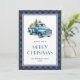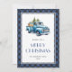 Festiva Camión azul antiguo con tarjeta navideña Snowy Mer