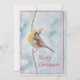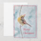 ¡Este cardenal muy especial está aquí para desearles a ustedes y a los suyos una Feliz Navidad! Encanta a tu familia y amigos con esta pintura original de Kathryn Paul de un pájaro juguetón que dice "¡mírame!" Es una cardenal hembra aferrándose a una rama mientras la nieve cae a su alrededor.