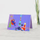 Esta Casa Retro personalizable para la Tarjeta de Navidades Vacacionales se parece a una escena de un especial de Navidades de televisión de los años 60. El diseño minimalista cuenta con una atractiva pareja de personalizados en la sala de estar de una casa moderna de mediados de siglo. La habitación está decorada con una pared de piedra morada y azul y una alfombra a rayas azules y violeta. Contra la pared hay una chimenea en forma de cono turquesa con una chimenea encendida. Dos medias de Navidades rojos y blancos han sido colgadas por la chimenea modesta con cuidado. En la parte superior de la pared se colocan fríos de Navidades coloridos. En la esquina, el hombre elegante de la casa está sentado en una silla de huevo rojo. Lleva un traje azul con corbata roja. Hay un trozo de caramelo pegado a su solapa. De un lado, sostiene un vaso de martini. ¡No es de extrañar que esté tan lleno del espíritu Navidad! Junto a él hay un pequeño árbol de Navidad verde con adornos verde azulados y una estrella amarilla. Colgando del techo hay una luz Sputnik amarilla. Una rubia con una figura de cristal de arena está sentada en la alfombra. Lleva un vestido rojo festivo y un sombrero Santa.Junto a ella, en el suelo, hay un reproductor portátil de discos azul y negro. Varios álbumes de Navidades están esparcidos cerca del hermoso DJ. Sigue adelante y canta. ¡Sabes que quieres! El interior de la carta es morado. Como se muestra, la tarjeta dice, "Felices Fiestas", pero es fácilmente personalizado, si lo escoges.