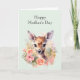 Tarjeta del Día de la Madre con un hermoso ilustracion con un bonito ciervo. Rodeado de rosas y flores.