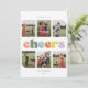 Envíe saludos de vacaciones a sus seres queridos con esta tarjeta de vacaciones de seis fotos con un llamativo y colorido CHEERS y espacio para texto personalizado en la parte superior.