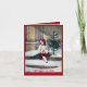 La imagen de esta tarjeta fue adaptada de una postal vintage. muestra a una joven sentada al lado de un árbol de Navidad en los escalones de una casa.