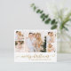 Guión de caligrafía blanca y dorada elegante presupuesto Tarjeta postal simple de 5 Navidades fotográficos. Esta cédula festiva minimalista de vacaciones presenta un collage de fotos de cinco (5) bonitos, "Feliz Navidad" El texto de saludo manuscrito está escrito en un hermoso tipo de letra con letras a mano giratorias y cruz con cruz de cruz en oro y blanco. Tarjeta de saludo de bonito para su familia y amigos en la temporada de vacaciones de invierno.