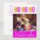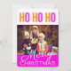 El saludo de la temporada de navidades está cerca. Momento de reunirse durante esta feliz festividad, envíe encantadores deseos de Navidad a su ser querido. Comparte tu momento alegre con amigos y familiares con tarjetas de felicitaciones de temporada. Que tu día sea alegre y brillante en esta ocasión. Acerca del diseño:- Tarjeta frontal: diseñada para una sola foto, fondo blanco con fondo blanco de navidad mora sobre una capa rosa rectangular en la parte inferior de la tarjeta, decorada con las ilustraciones de texto de HO HO en la parte superior de la tarjeta. Tarjeta inversa: fondo blanco con textos de tipografía rosada. Se proporcionan marcadores de posición para mensajes editables y saludos. Nota importante: la imagen de muestra no está a la venta, por favor, reemplácelo por su propia foto.