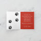 Celebra la magia de la temporada con nuestra "Cozy Maine Coon Navidades Snow Scene Card". Esta encantadora tarjeta presenta una escena reconfortante de un majestuoso gato de Maine Coon sobre un festivo sombrero de Santa, sentado con elegancia en medio de un sereno paisaje cubierto de nieve. El telón de fondo está adornado con velas de Navidades relucientes, exuberante vegetación y bonitos regalos envueltos, creando un pintoresco maravilloso paisaje invernal que capta la esencia de las vacaciones. Adentro está la opción de personalizar del mensaje o añadir la foto para reemplazar el diseño de la huella de la pata.