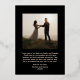 Se incluye un mensaje sincero en la parte de atrás con esta hermosa tarjeta de agradecimiento. Se incluye un elegante Relieve metalizado de verdad en la parte delantera. Puede eliminar el mensaje y escribir el suyo si lo desea. Esta tarjeta personalizada de agradecimiento para bodas también incluye dos fotos personales, ideales para mostrar momentos o retratos favoritos de tu gran día. Personalizable total con sus nombres y una nota personal cambiable, esta tarjeta es una hermosa manera de expresar gratitud a la familia y amigos que hicieron que su celebración fuera inolvidable.