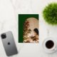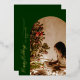 El diseño presenta Felices Fiestas en un script de caligrafía con holograma dorado sobre un fondo verde profundo festivo. Personaliza fácilmente tus detalles personales junto con tus fotos en el anverso y reverso. Una hermosa tarjeta y recuerdo para familiares y amigos en esta temporada navideña.