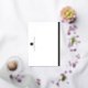 Notecas de papel plano y en blanco que muestran tu monograma inicial en un cuadrado de Relieve metalizado y el nombre de abajo en una fuente masculina. En la parte inferior hay un borde de Relieve metalizado.
