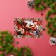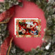 Este diseño se inspiró en fotos de flores frescas. Las insettias festivas se envuelven alrededor de tu foto con contornos de oro. ¡Lo que parece un cristal manchado es un marco maravilloso para la foto de tus Navidades!