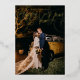 "feliz año nuevo" en lámina real de caligrafía elegante. Elija el color de lámina: dorado, plateado o dorado rosa, y color de respaldo. Agregue más fotos en la parte posterior o escriba un mensaje.